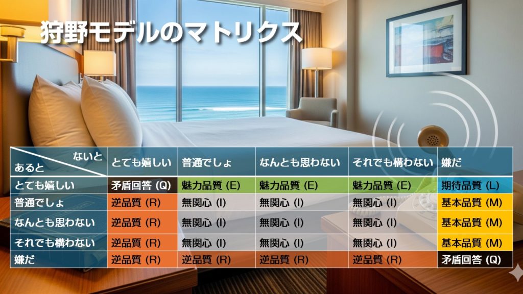 - 狩野モデルは「あると/ないと」の 2 つの質問から始まる