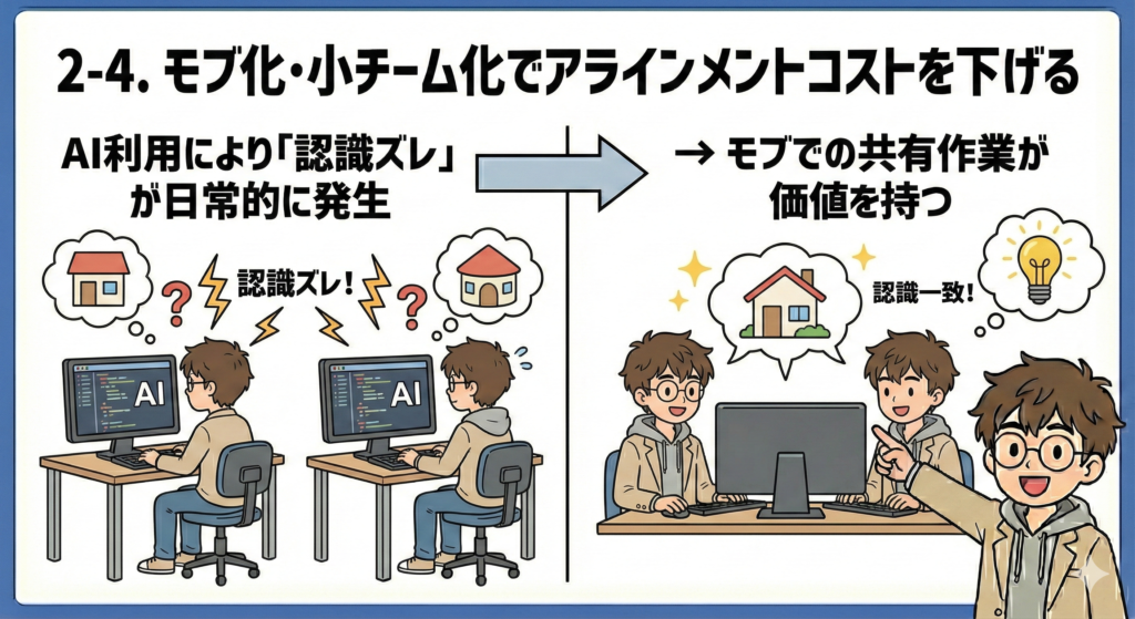 - 2.4 モブ化・小チーム化でアラインメントコストを下げる
